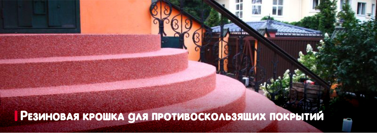 Такой материал востребован для покрытия промышленных цехов, подземных переходов, крутых спусков, больничных коридоров, складов и крытых автостоянок. Специальная резиновая крошка выпускается в виде готовых смесей разной зернистости и множества оттенков, предоставляя свободу творчества дизайнерам и архитекторам.